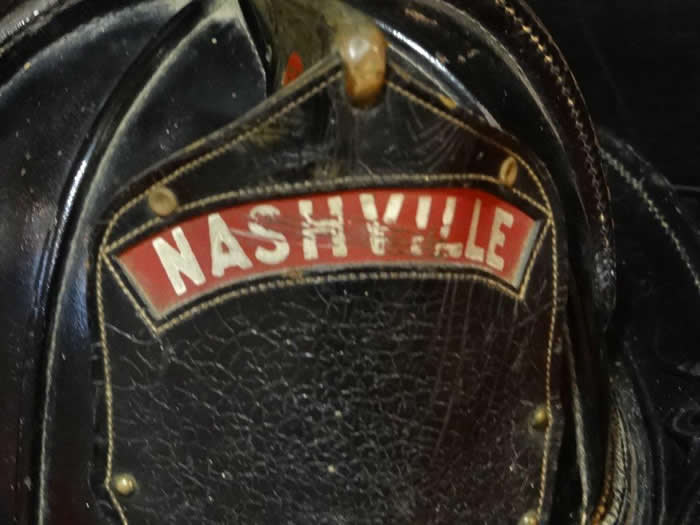 Cairns leather Fire helmet from the Nashville Fire Department with Original Leather front and ear flaps. This helmet is in great original condition as seen in photos.