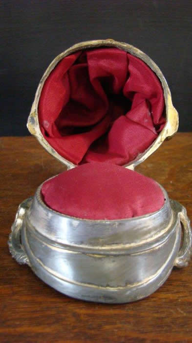 Fire Helmet Pin Cushion Box. This is a Antique English Fire Helmet Pin
