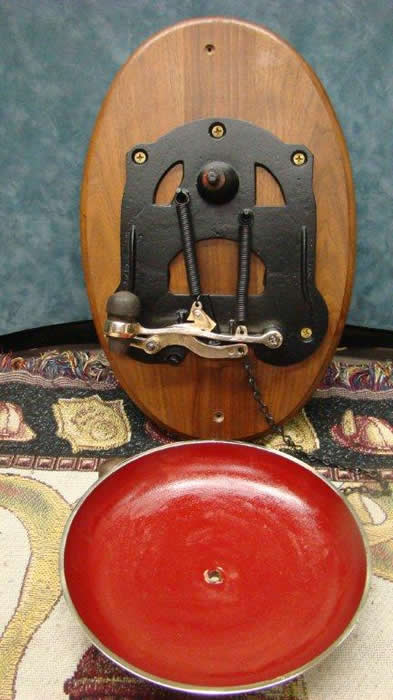 Base and solid wood striker. These were often used as manual alarm or alerting devices.