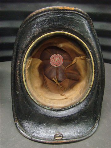 Vintage Oak Park Fire Department Cairns leather fire helmet with leather