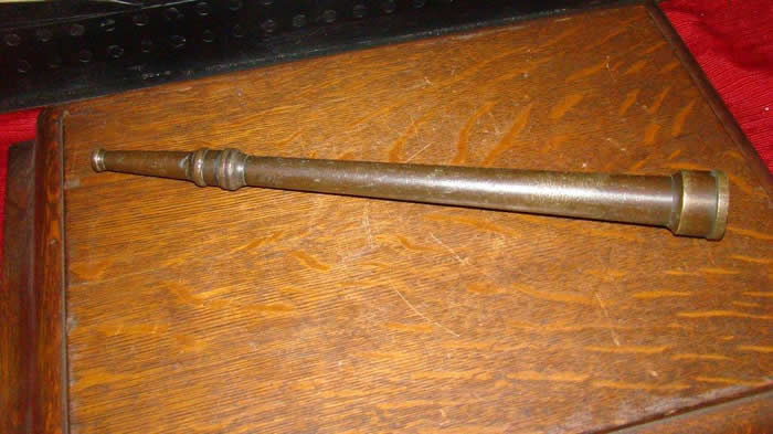 Vintage solid brass Chemical Tip Nozzle with 3/4 inch hose thread pattern in original condition with great a great brass patina. It measures 12 inches long.